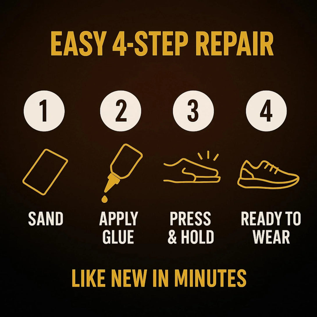 Reliable Sole Repair Solution: A trusted alternative to traditional shoe glue and shoe cement products like Barge or Angelus, offering heavy-duty strength for long-lasting repairs.