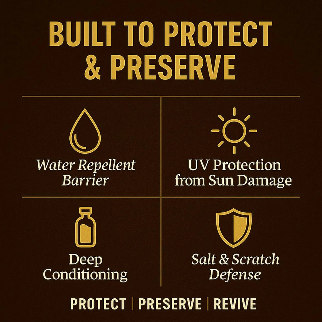 WATERPROOFS & PRESERVES LEATHER GOODS: Forms a water-resistant barrier that repels moisture and helps prevent cracking, salt stains, and damage from wear and tear.