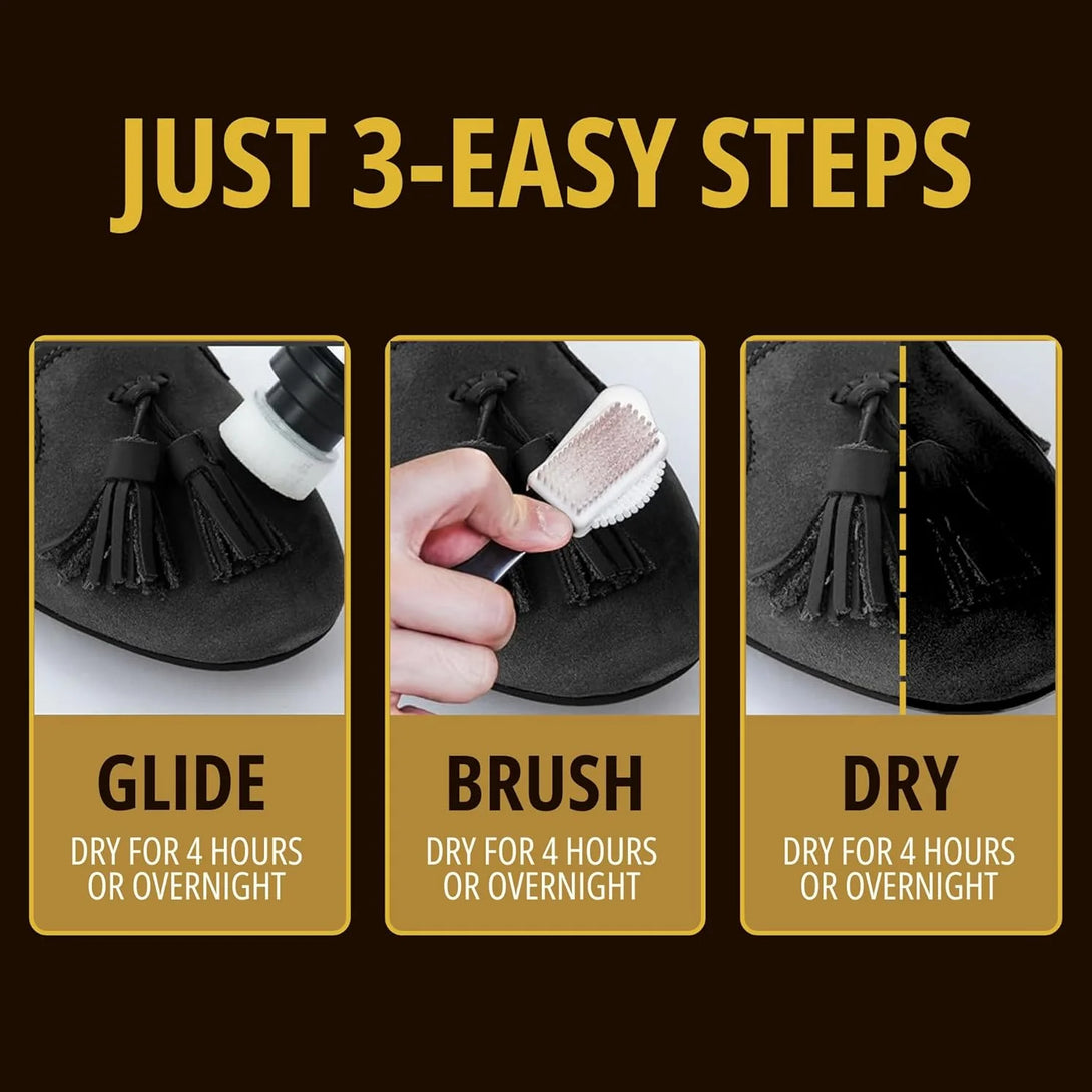 3-WAY BRUSH INCLUDED – This suede dye kit comes with a high-quality 3-way brush equipped with a suede eraser. Used for cleaning, restoring texture, and ensuring a smooth, professional finish after dyeing.