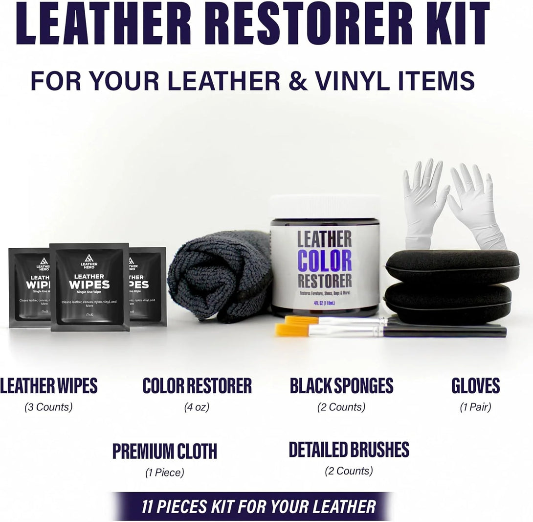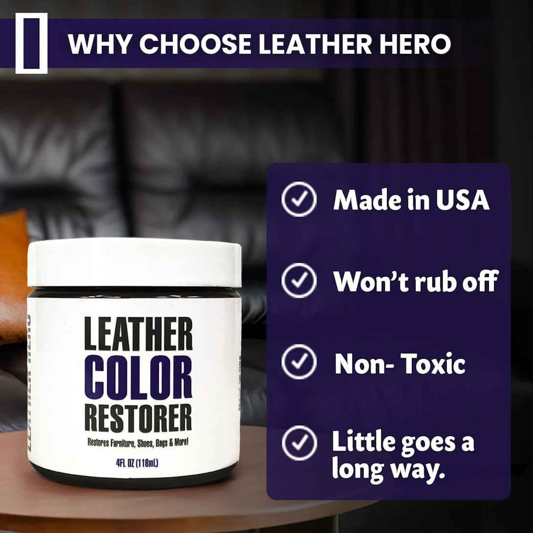 Leather Hero Leather Color Restorer for Couches, Leather Scratch Remover, Leather Couch Scratch Repair for Furniture and Car Seats - Complete Kit, Non-Toxic, Made in The USA